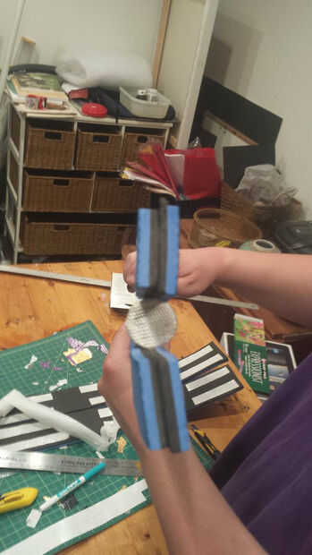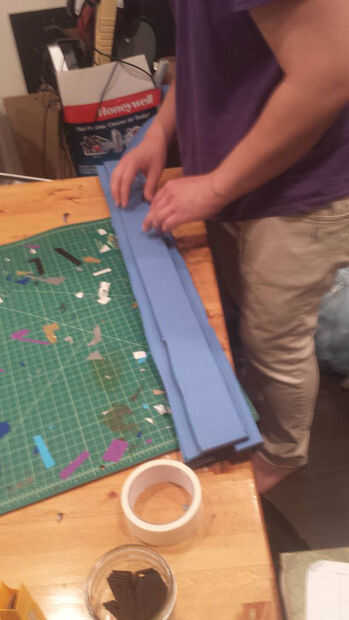 Luego llenar los agujeros en los extremos con espuma de chatarra. sujétela con un pequeño trozo de cinta de la alfombra
