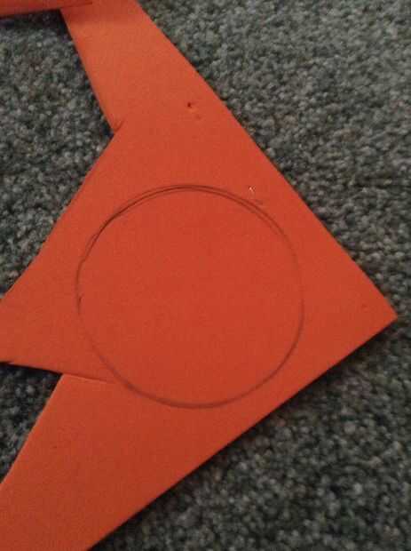 Dibuja un círculo en la espuma con el interior de su rollo de cinta. Recortar el círculo. Coloque el círculo en la parte superior del tubo. Seguimiento de la apertura y corte hacia fuera. Deslice el anillo de cebolla de espuma en el tubo. Pegar la espuma en por cualquier medio que considere oportuno.