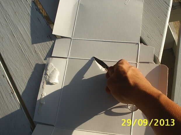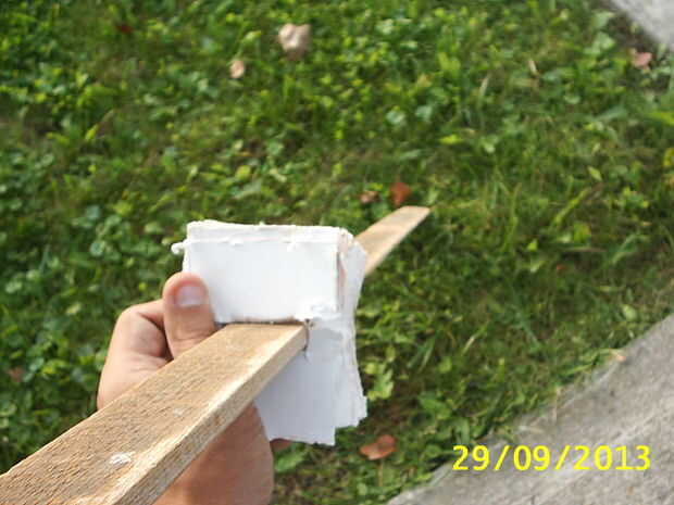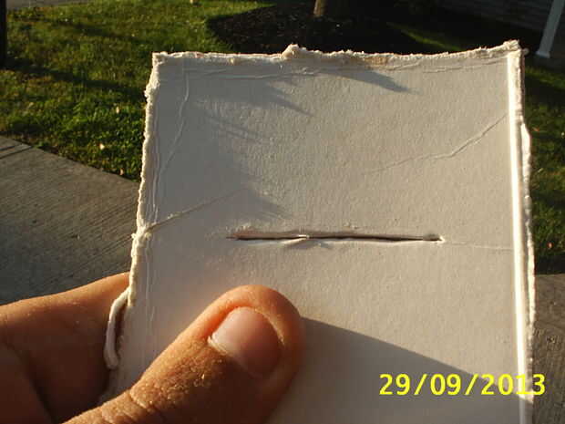 Línea y con el cuchillo, corte una hendidura a través de ellos donde irá la hoja.