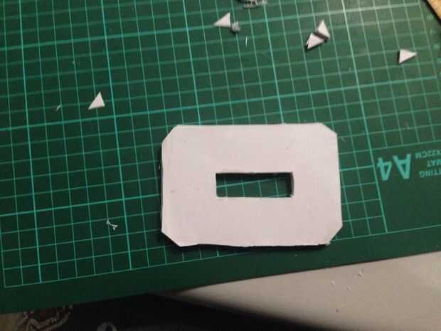 10. encontrar el centro de la pieza y marcar un orificio del tamaño de la espada, tome en cuenta la diferencia del tamaño de la hoja y la empuñadura.
