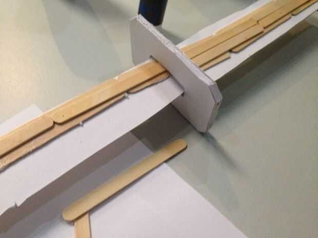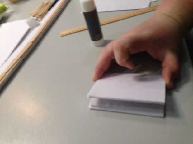 6. doblar por la mitad otra vez y repetir el encolado y exprimir la regla.