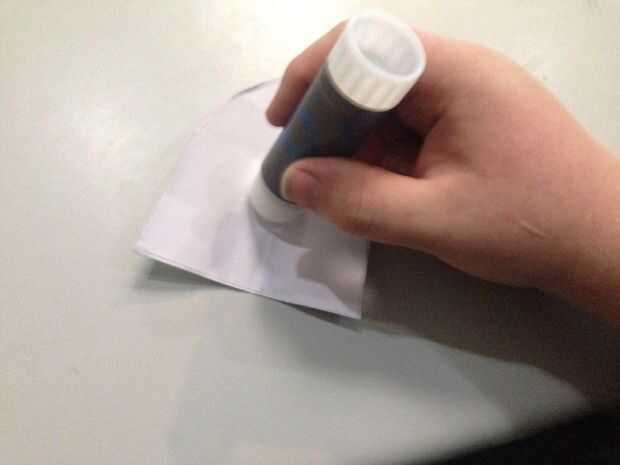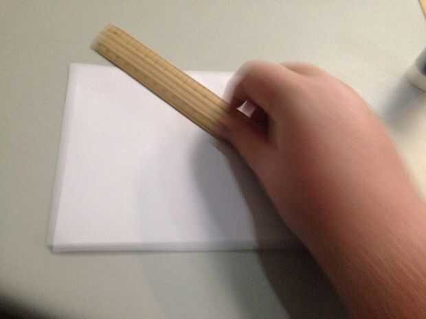 6. doblar y pegar un pedazo si papel por la mitad horizontalmente.