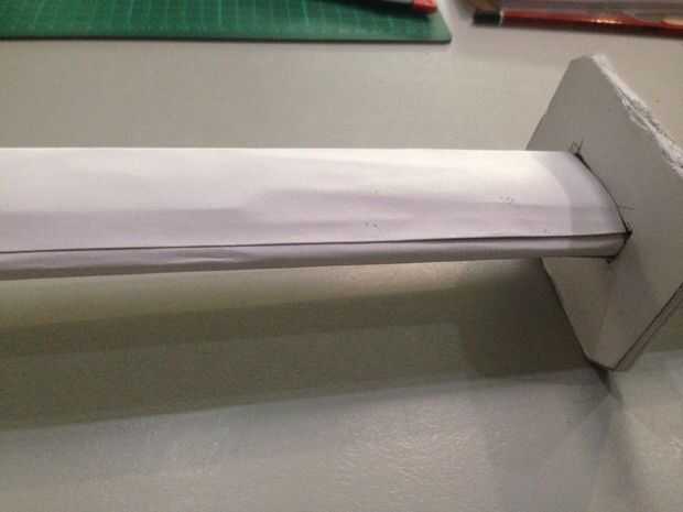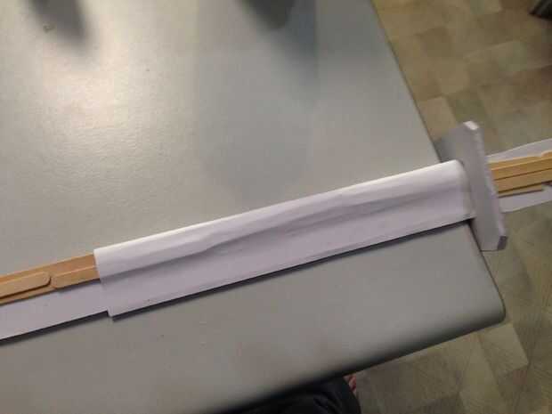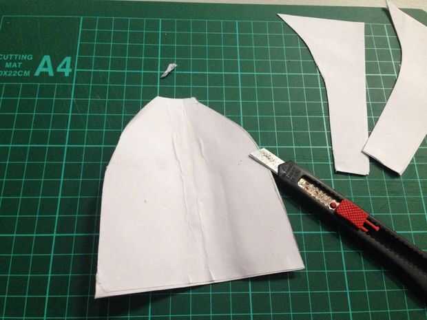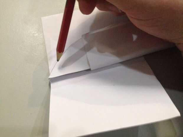 10. Coloque la espada por el doblez hecho en el paso anterior y traza la forma de la punta en la pieza.