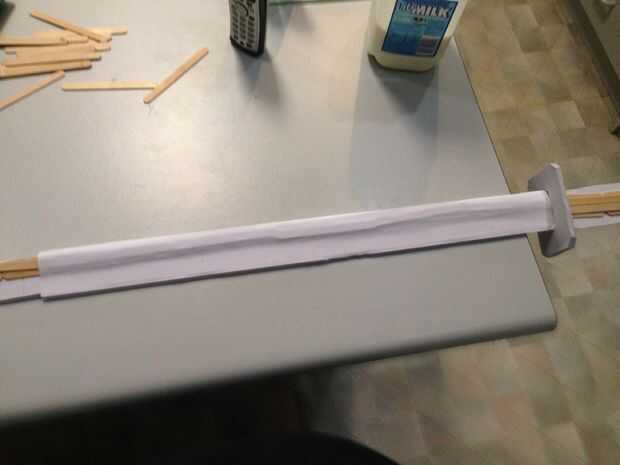 2 y 3. Colocar en la parte posterior de la lámina de la espada y liso, vinculación a la espada reforzada espacio en blanco.