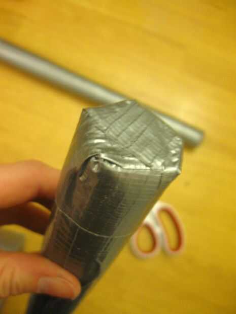 He incluido fotos de cómo he cubierto el extremo de la espada con cinta para que sea más prolijo.