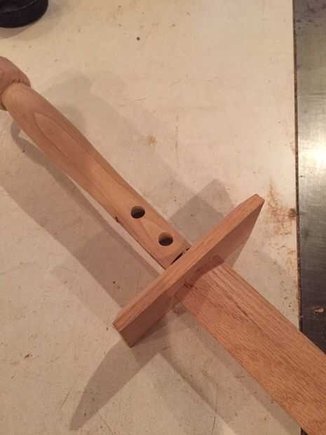 Después de los secos, yo utiliza una sierra de marquetería para cortar las espigas de exceso del cuerpo de la espada y utiliza una serie de papel de lija para lijar suave al mango. Por suerte, la construcción de la espada sintió como una sola pieza de madera en este punto.