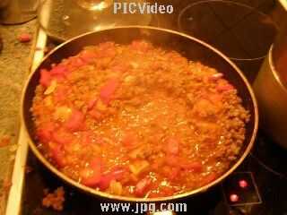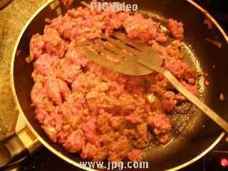 Ahora que mezclar ellos, los tomates y las especias en una cacerola. Si queremos la salsa más gruesa o tienes miedo de hacer tu propia salsa de tomate que podemos añadir algunos de cualquier otra salsa de tomate. Tenemos que llevar esto hasta hervir durante unos 2-5 min y luego lo cocine a fuego lento durante 10 minutos. Ahora hay que dorar la carne para la salsa que dorados sobre una libra o medio. Tenemos que darle la vuelta alrededor en la sartén y marrón todos los lados. Una vez hecho esto debemos colar la grasa de la carne y mezcla en la salsa. Todo lo que necesitamos hacer ahora es calor arriba y servir sobre los tallarines!