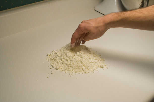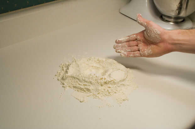 No te preocupes si las paredes de harina comienzan a desmoronarse. No afecta la pasta, pero hará más de un lío.