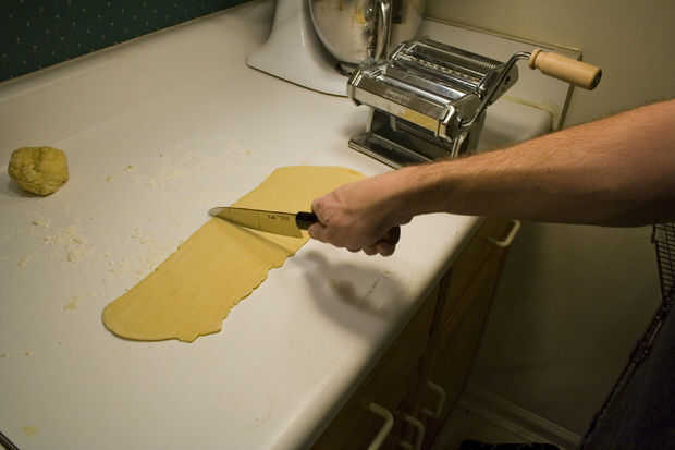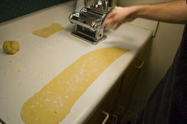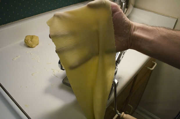 Mover sus rodillos una configuración más cerca juntos y pase la masa por los rodillos de dos veces. Repetir este proceso hasta que la masa es tan fina como usted quiere que sea. Recuerde que la pasta ampliará a 25-50% cuando lo cocine.