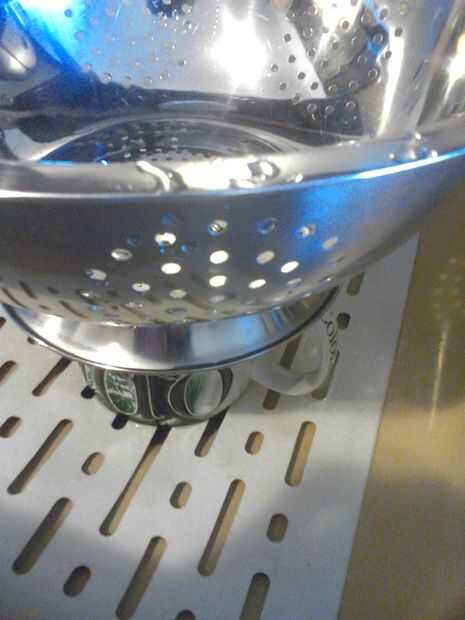 Cuando el hervor Escurra los fideos y rebanadas del perro.