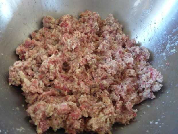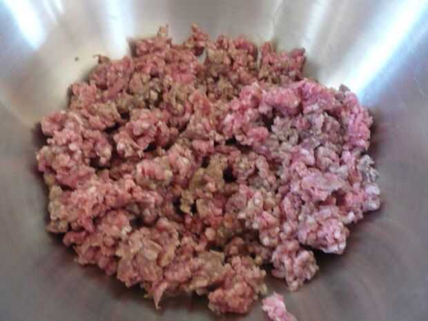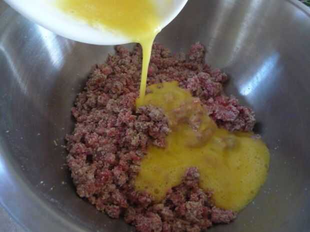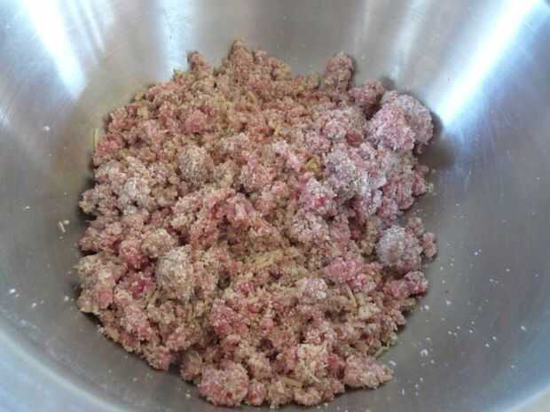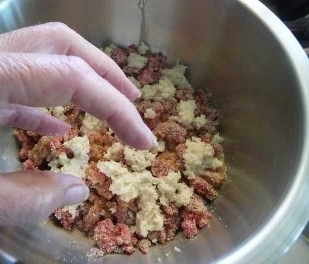 Forma de la mano dominante como una garra. Rápida y suavemente mezclar la mezcla de carne hasta que todos los ingredientes se combinan uniformemente.