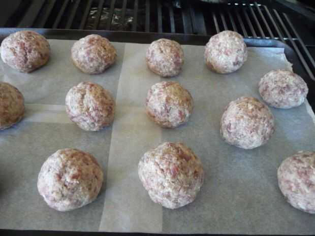 Coloque las albóndigas 2 pulgadas aparte en una bandeja para hornear forrada con papel pergamino *.