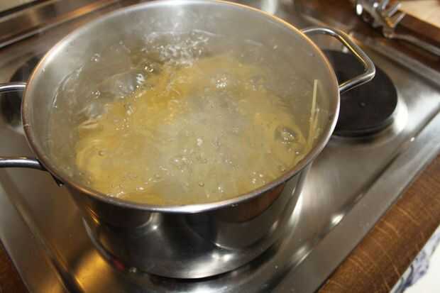 En agua hirviendo, poner los espaguetis junto con poco de sal y aceite. Dejar hervir durante unos 10 minutos e inmediatamente el agua caliente y mantener el filtro con los espaguetis bajo el agua fría directa del grifo durante unos segundos. No romper los espaguetis en dos. O instrucciones en el paquete como la forma de cocinar.