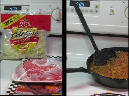 Lo importante a la sencillez de esta receta es que utiliza carne molida de res, ya sea 80% o 85% magra, y una bolsa de mezcla de ensalada de col, ya triturado y limpiar. El aceite de la carne de vacuno se utiliza para revolver-fría la col, así que si usas salchicha o menos carne (o ninguna carne en absoluto), usted tendrá que añadir una cucharada o dos de aceite para freír encima de la ensalada de repollo. Por el bien de los niños, yo usaría aceite vegetal en lugar de aceite de oliva, ya que puede hacerla "gusto raro" y desactivar un comedor meticuloso.