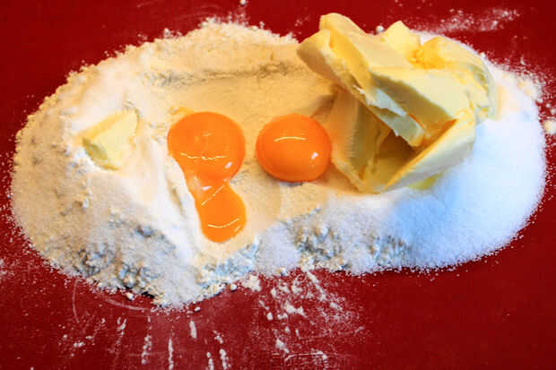 Se amasan todos los ingredientes una masa lisa. Formar chorizos y envolver en film transparente. Poner durante 30 minutos en la nevera. Después de 30 minutos puede corta en trozos de dos dedos anchura y los aplana. Deben ser redondas y sólo unos pocos milímetros de alto.