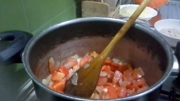 Añadir el tomate picado y bell pepper.give un gran revuelo.