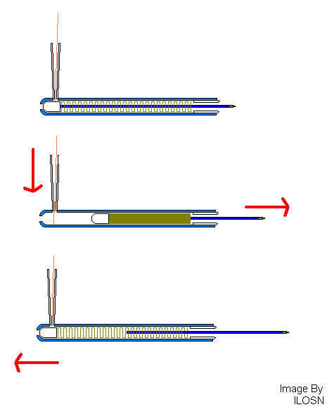 Pic rápida. Sólo para mostrar cómo funciona y cómo extremadamente simple de uso. Puede impulsar el palo tinta y tire de ella hacia atrás disparando muy rápidamente un montón de espaguetis.