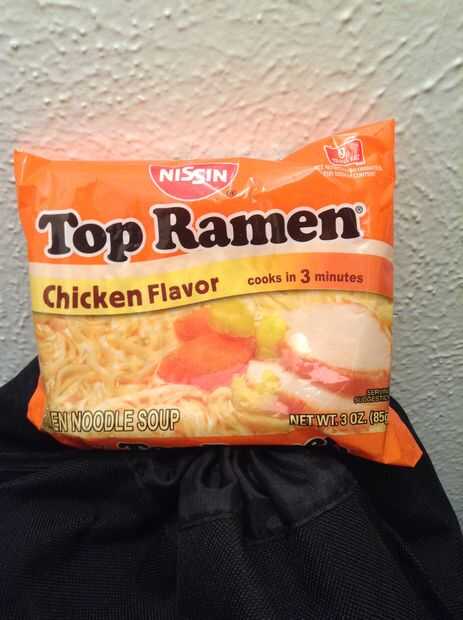 Tomo los fideos en un paquete de Ramen y deseche el paquete de sabor salado.