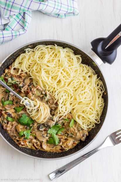 Este increíblemente deliciosa seta cremosa casera y tomate seco Spaghetti será un golpe en la mesa de la cena! Una vez más, esta es una de las recetas fáciles con pocos ingredientes pero lleno de sabores increíbles!
