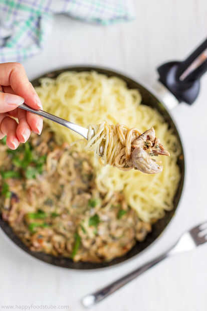 Este es uno de mi ir a recetas cuando estoy anhelando algunos pasta cremosa que es sabroso pero ligero. Las setas shitake dan un fuerte sabor a este plato mientras que el maíz añade una dulzura encantadora y equilibra todo. Es un plato de fusión asiá