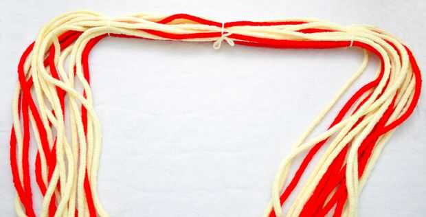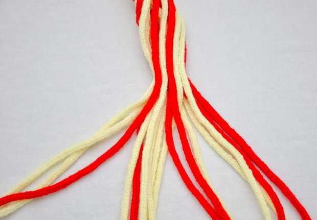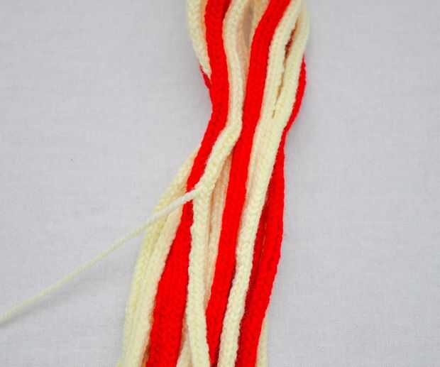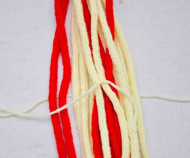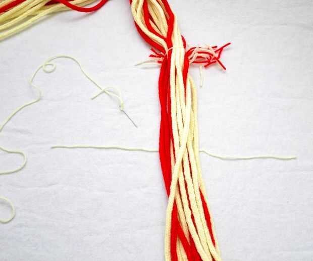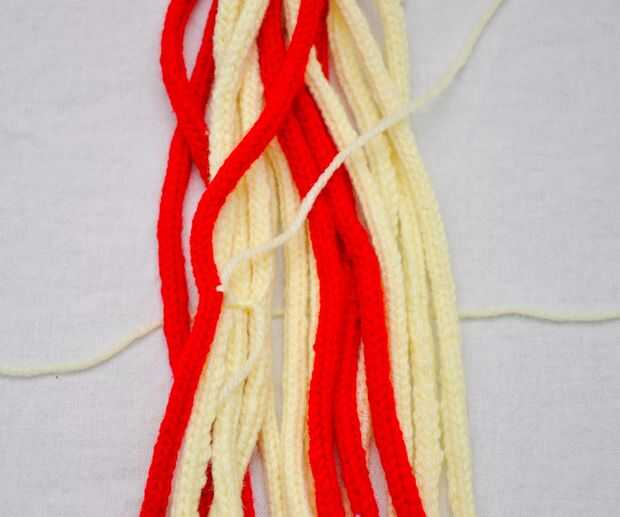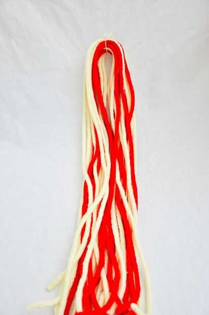 - Asegúrese de que usted agruparse el de tallarines en el extremo y un nudo para que no todo cae aparte.