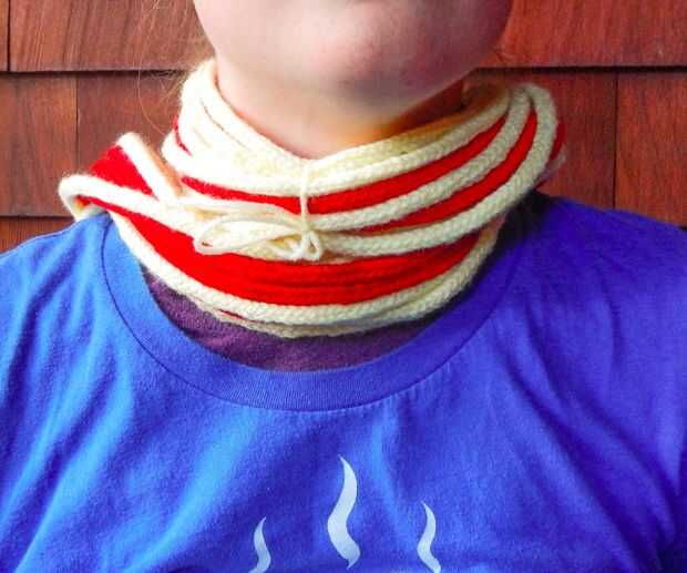 Bueno, tiempo para coser juntos todos tus fideos. Mi objetivo aquí era coser hacia arriba por lo que no era muy evidente que estos tallarines fueron cosidos juntos. Quería que parece sólo fueron colgando en mi cuello.