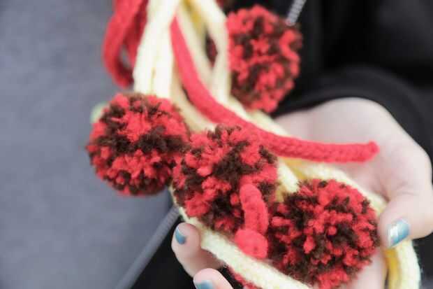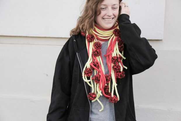 Espaguetis y albóndigas bufanda de punto (8 / 8 paso)