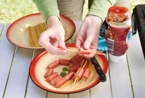 simplemente pase los espaguetis crudos a través de los perros calientes