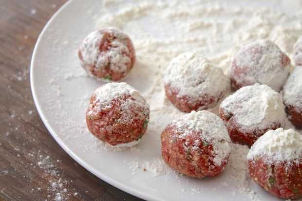 esta receta es para porciones de albóndigas. Si vas a hacer albóndigas, por qué alguien sólo tendría suficiente para una comida, cuando usted puede hacer lo suficiente para tres. Este lote de 21 albóndigas probablemente me dan cena de espaguetis y al