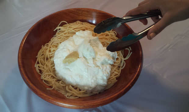 En Filipinas, espagueti es un plato muy popular y se sirve en muchos restaurantes de comida rápida. Espaguetis filipino es característico dulce y cremoso con mucha salsa y queso. También utilizamos generalmente el cerdo y salchichas para el ingredien