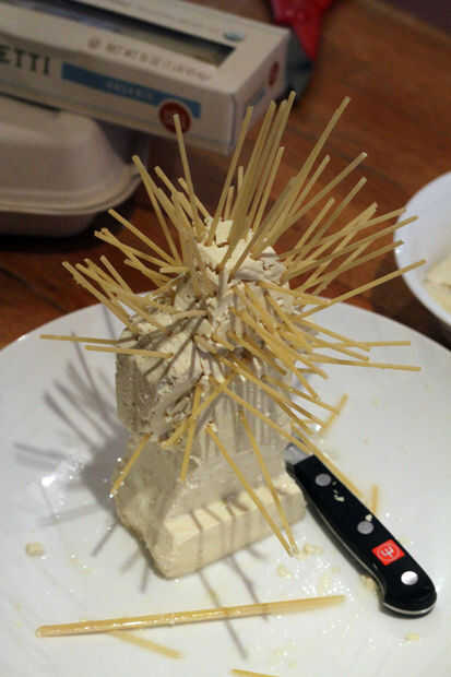 Mis 3 niños tenían una ráfaga completa haciendo esto!Espaguetis Hot Dog!Básicamente kid friendly espaguetis y albóndigas!Paso 1: Pinchar los perros! Pasta espagueti duro... usa cabello de Ángel...Les traba derecha a través del perrito caliente rebana