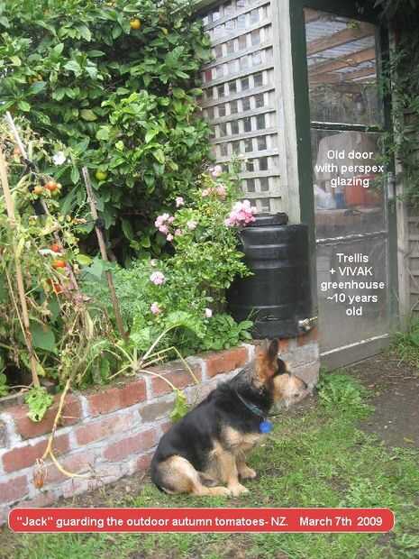 Una pared de punta baja (fácilmente hecha de ladrillos viejos etc.) se recomienda para estructuras más permanentes-ladrillos pueden ser más baratos que el enrejado/Vivak y también sirven para mantener algo de calor! madera 50x100mm puso en esto (con humedad impermeabilización y argamasa pernos) entonces se hace para una fijación duradera segura. Aunque el murete exterior se muestra detrás de "Jack" es típico (y coincide con la pared interior enrejado pie), esto es bastante reciente (según lo evidenciado por el mortero), después de haber sido erigido simplemente para contener el expansión al aire libre jardín.