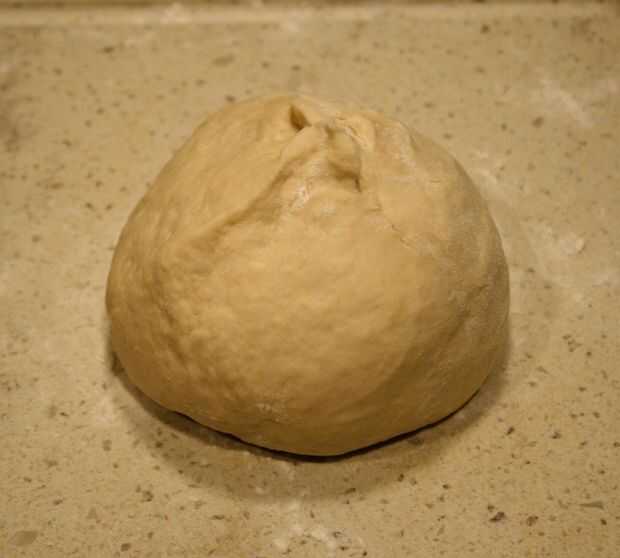6. polvo de harina en las manos y sobre una superficie estable, agradable y comenzar a amasar la masa. Amasar durante unos 10 minutos descomponer el gluten y conseguir una bola de masa suave y elástica.