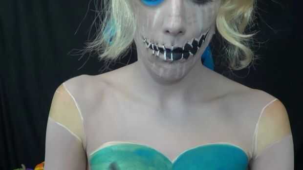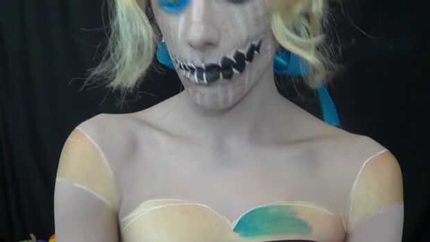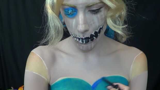 Teniendo una luz azul cuerpo voluntad de pintura en el vestido, luego añadir una sombra azul clara en la parte superior y alrededor de los lados pone una sombra azul oscura y mezcla.