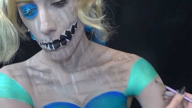 hacer el mismo detalle de la textura de la piel y luego usar una sombra marrón oscurezca para contornear la clavícula.
