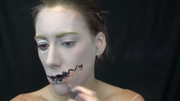 Llenar la boca con la pintura de cuerpo negro. Tengo un lado abierto con las líneas irregulares, en el otro lado va a poner cadena así que asegúrese de dejar algunas líneas de claro para.