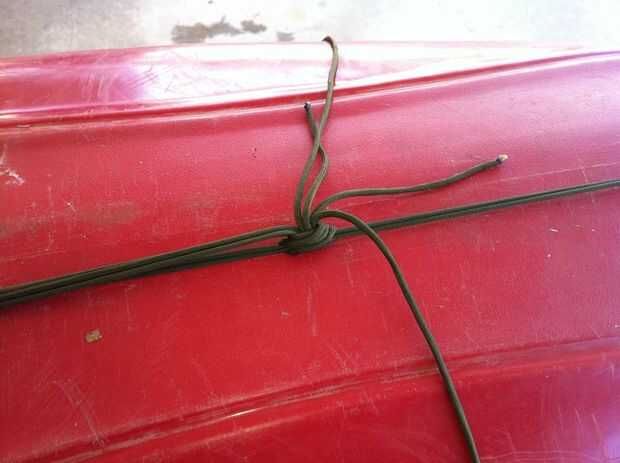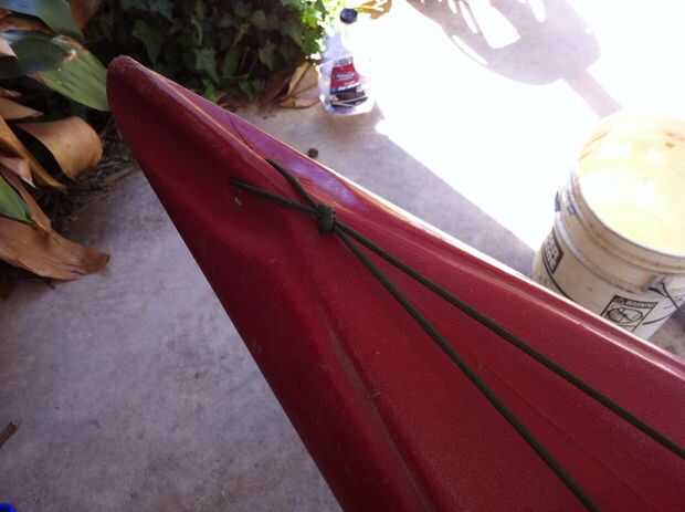 El truco de todo que esto es si has seguido mis instrucciones y tire todo, aparte de dejar los nudos en el delantero y posterior de la manija puntos se convierte en un sistema de montaje de tu Kayak a la parte superior de un carro o camioneta. 4 puntos, dos controla el frente atan dos controla la parte de atrás. también dobla como dos en el lado izquierdo y dos en el lado derecho. Estabilización perfecta.