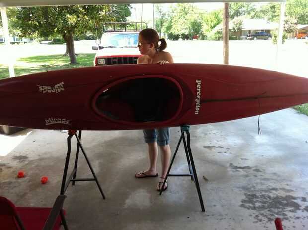 Aquí es una gran manera para transportar a kayaks (5) además de los remos, chalecos salvavidas y otros engranaje cuidadosamente en la parte trasera del pick-up. Outfitters en nuestra área de cobran $40 por kayak por viaje que te deje aguas arriba ($2