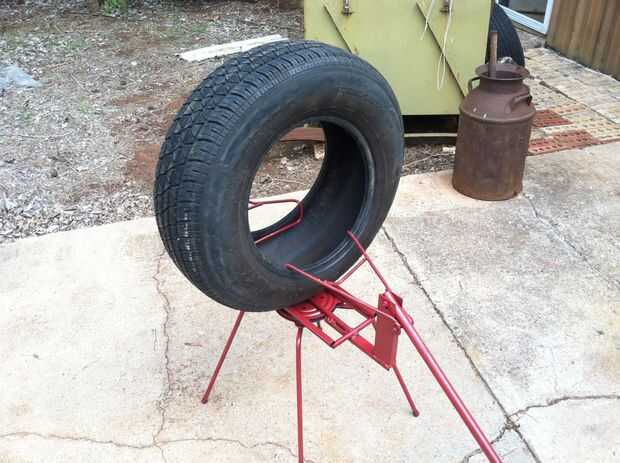 Al inspeccionar o reparar un neumático de automóvil, es realmente difícil conseguir el neumático extendido lo suficiente como para llegar al interior de la llanta. Yo he necesita esta herramienta para 50 años, pero mantiene aplazar lo que uno hasta ahora. Pude haber comprado una herramienta similar para $150 a $450 en línea, pero desde que estoy jubilado, me decidí a hacer uno de acero de desecho de mi montón de chatarra.