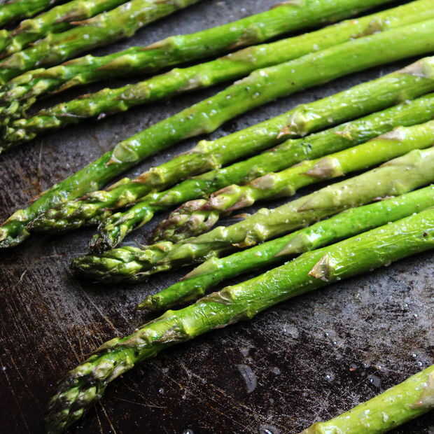 Tallos más delgados cocinan en 6 minutos, gruesos tallos de 8-10 minutos. Todo lo que necesitas es un poco de espárragos, sal y pimienta, aceite de oliva y una placa para horno.