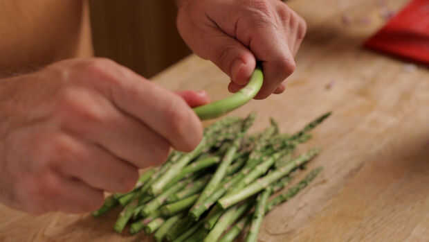 1 libra de espárragos, pulgadas de fondo eliminado