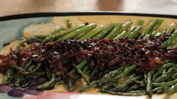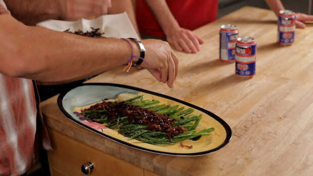 Espárragos con cebolla balsámica y tocino (4 / 4 paso)