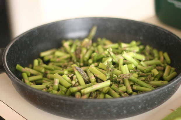 Así que aquí está una receta que me gusta hacer en verano. La perfecta combinación de verduras y la carne donde se puede disfrutar el verdadero sabor de los espárragos y cordero.Paso 1: ingredientes-300g de cordero-6 espárragos verdes-1 puerro-1 pata