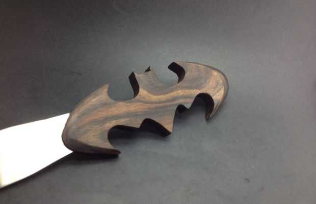 Cabe señalar en este punto que me doy cuenta de que la parte metálica de la espátula no iba a caber en mi mango de Batman. Trató de cortar un archivo, pero sólo acabó llevándose todo a la amoladora. Mucho, mucho más rápido!