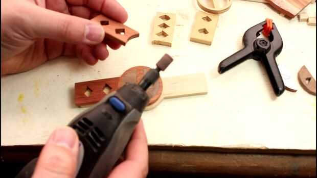 Usé mi Dremel con un accesorio de lijado para ayudar a conseguir la forma correcta para todas las piezas. Dato divertido: gané ese Dremel de un concurso de Instructables.com (¡ gracias!) Espero que los proyectos más que hacer en la Sierra de calar, el menos ajuste será necesario.