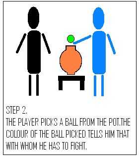 3. el color de la bola que escogieron le dice al jugador con quien él tiene que luchar.