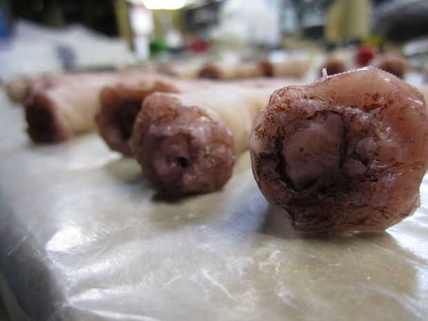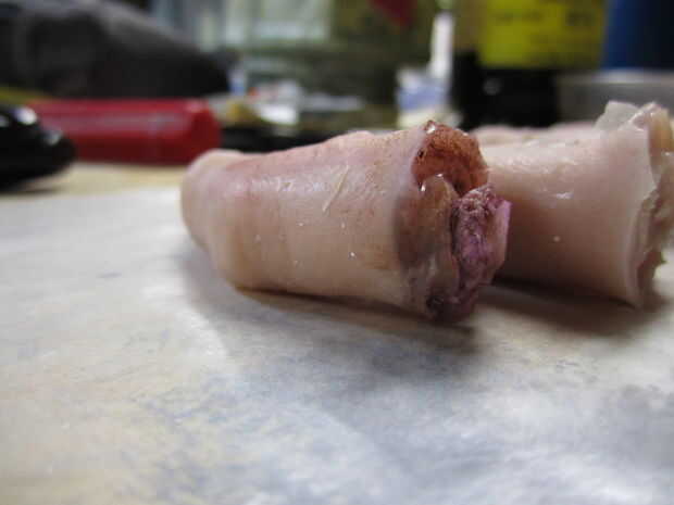 Los huesos se inserta en los moldes de dedos de silicona y, en esencia, actuaba como palitos.