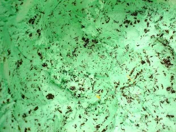 Dicen que su helado de té verde, pero su más práctico ocultar en helado de chispas de chocolate de menta.