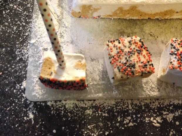 ¿Truco o trato? Trick Asegúrese de disfrutar de Spooky Marshmallow Pops! Estas delicias son rápidos y fáciles de hacer y servir como una divertida forma de celebrar Halloween. Aparece misteriosa es malvaviscos bañadas en chocolate. Puede adornar con