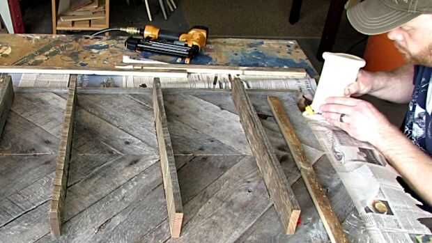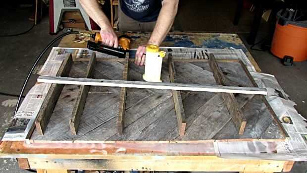 Luego adjunto mi lados enmarcados con un poco de pegamento de madera primero, luego utilizar mi máquina de clavar clavitos. La mirada de lo general era bastante rústica que no notan el brad clavo agujeros.